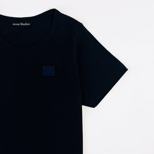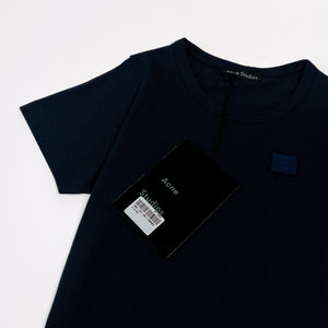 Acne Studios kids’ collection Mini Nash t-shirt in navy organic cotton. Featuring round neckline, straight hem and signature face patch.