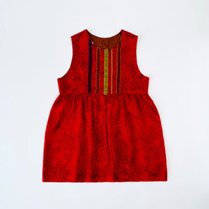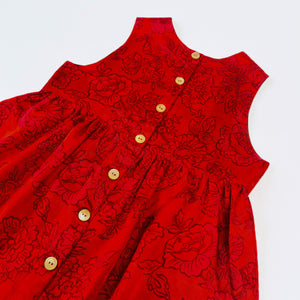Unique Dries Van Noten Dalhia woven dress in red. Featuring all over subtle floral pattern, contrasting front panels, gathered skirt and button closure detailing on the back.