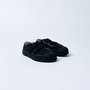 Felt sneakers in nearly black from Grey Label x Novesta’s AW19 collection. Inspired by Grey labels mono-coloured palette and Novesta’s minimalist design. Featuring organic materials, top stitched detailing, round toe, hook and loop Velcro fastening and integrated logo on the heel loop, at the back of the shoe.