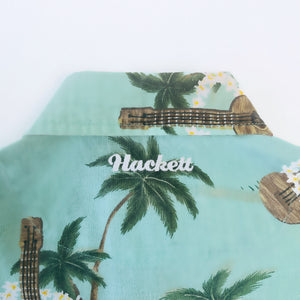 Tropical palm tree print shirt by Hackett, in mint green. Made in soft cotton poplin, with the Hackett logo embroidered on the front and back. Embossed front button fastening with contrasting trim on the inner placket and side vents.