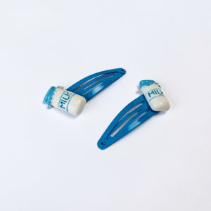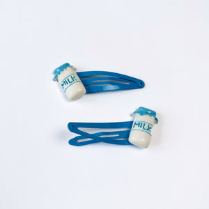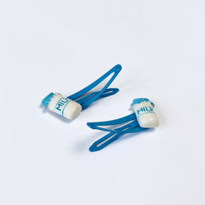 Milk bottle hair clips x 2. House of Clips create unique deigns, producing accessories that are both sustainable and multi-wear, with a focus on gender equality.