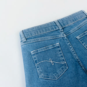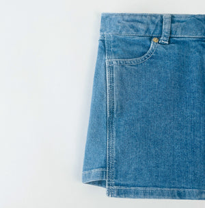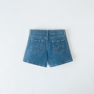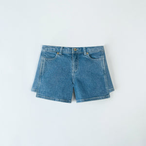 Blue denim shorts by Lanvin with side cut out detailing. Featuring side and back pockets with tonal embroidered logo. Made from soft denim with a slight stretch, they have a logo-branded popper button, zip fastening and an adjustable waist band.