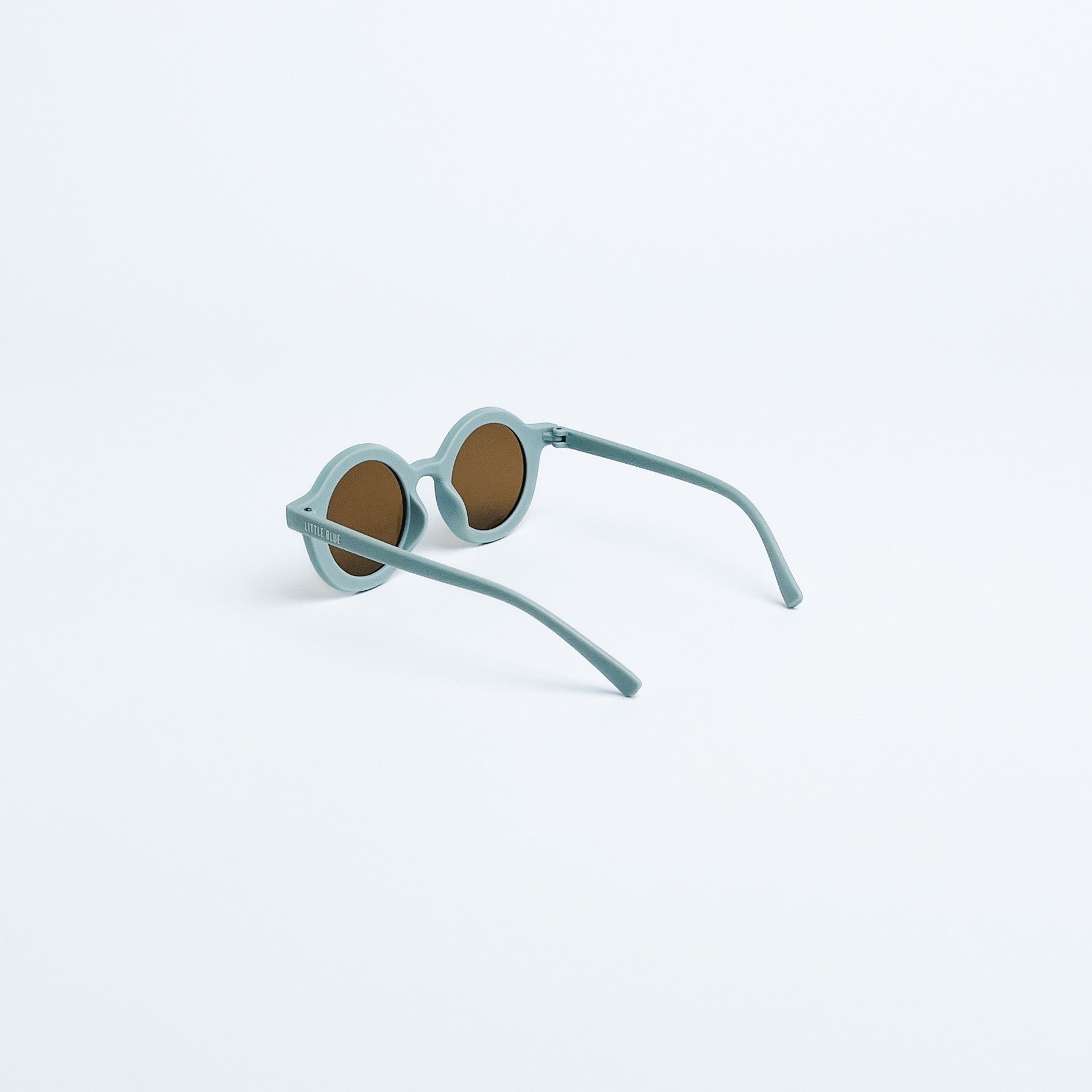 Vintage style sunglasses with round lenses by Little Blue. Designed for small faces and made using recycled and recyclable materials. Lightweight and comfortable to wear, Little Blue sunglasses offer UV400 protection and are tested according to the latest CE/UKCA regulations. Each pair comes with a drawstring storage bag which doubles up as a glasses cleaner.