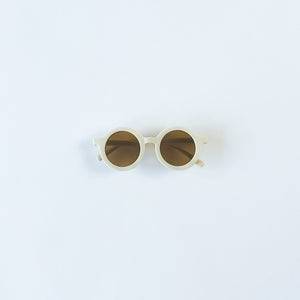 Vintage style sunglasses with round lenses by Little Blue. Designed for small faces and made using recycled and recyclable materials. Lightweight and comfortable to wear, Little Blue sunglasses offer UV400 protection and are tested according to the latest CE/UKCA regulations. Each pair comes with a drawstring storage bag which doubles up as a glasses cleaner.