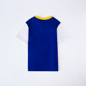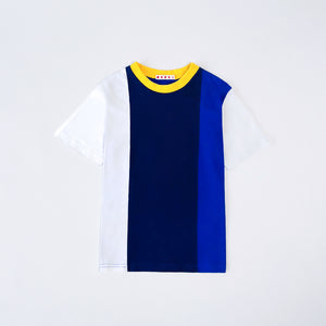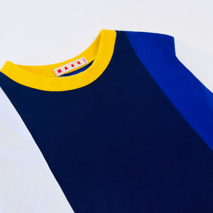 Marni cotton jersey t-shirt. Featuring front block stripes with contrasting yellow crew neck and Marni branding on the left hem.