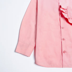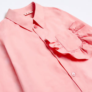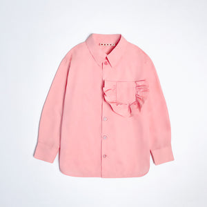 Marni soft cotton shirt in pink, with ruche pocket detailing. Featuring formal collar, side openings at hem, front button closure and button cuffs.