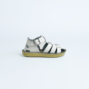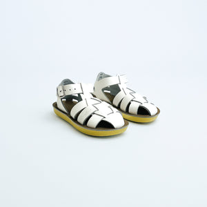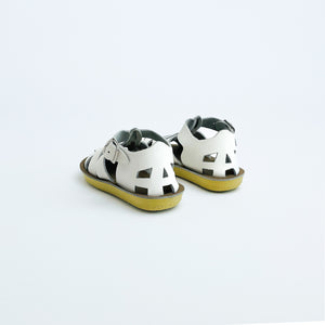 The Shark is a traditional children's fisherman style sandal. Featuring a robust woven semi-closed toe and heel offering extra protection. The Sun-San range of Salt-Water sandals can be worn in water and feature a spongy soft sole and rust proof buckles.