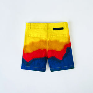 Graphic print rainbow shorts by Stella McCartney Kids. Featuring multicolour stripes that blend, hook and zip fastening, adjustable waistband, multi pockets and brand label on the reverse. Comprised of sustainable cotton twill with light stretch.