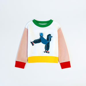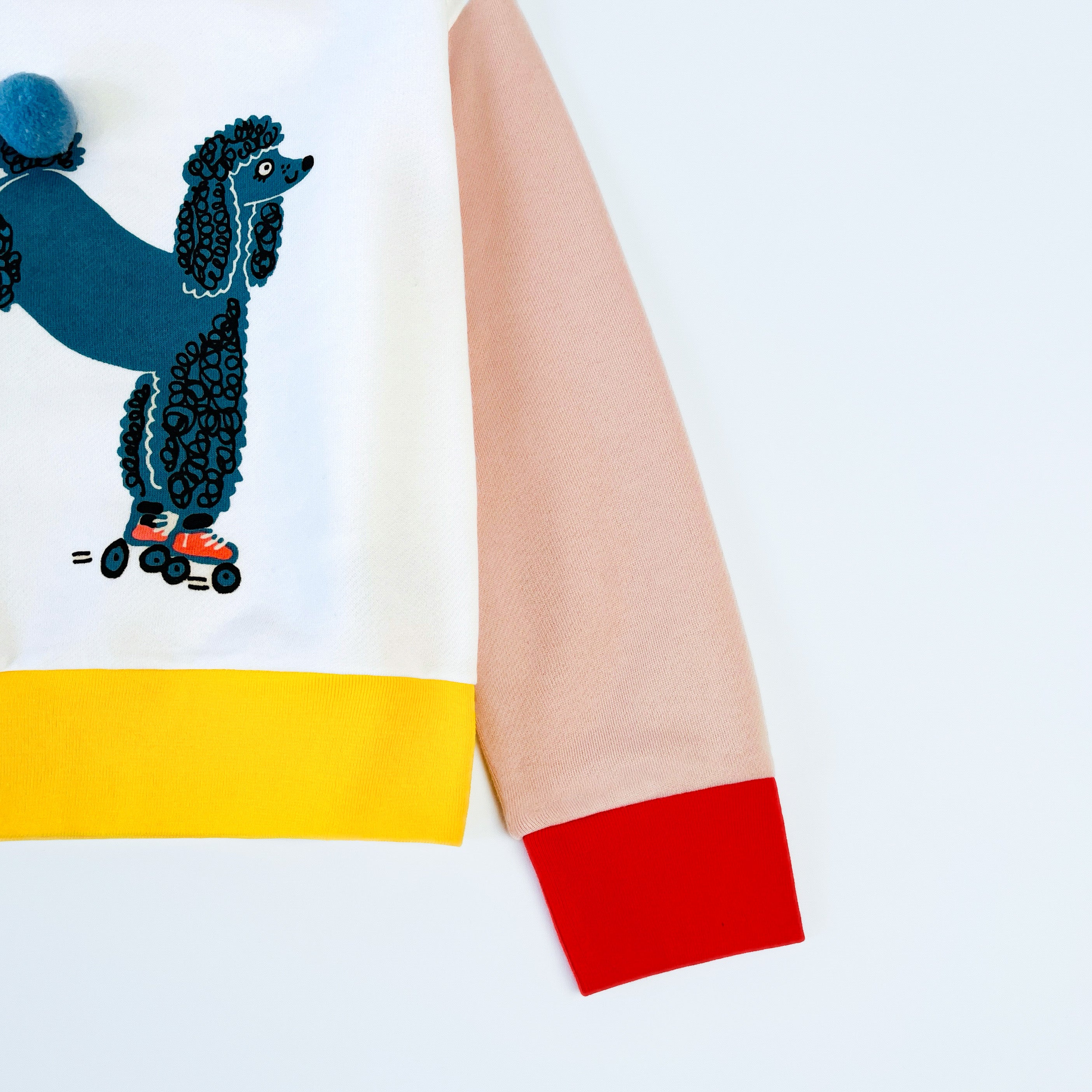 Colour-block cotton fleece sweatshirt by Stella McCartney Kids. Featuring a graphic poodle print with a pompom tail. Designed with a ribbed knit crewneck collar, cuffs and contrasting hem.