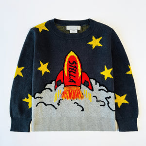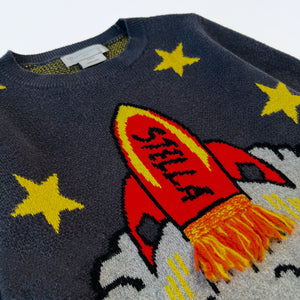 Stella McCartney Kids rocket sweater in grey with fringe detailing.