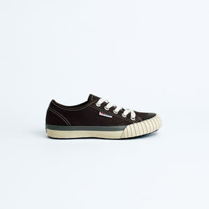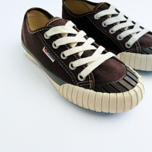 2750 Foxing kids’ trainers by Superga in brown. A retro-inspired take on the classic 2750, the Foxing is designed in a canvas upper with contrast stitching. This low-top tennis silhouette shoe features a textured rubber bumper toe cap and an extended outsole. The brand tab features on the side and heel. Vegan-certified Superga shoes are eco-friendly.